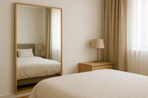 寝室に鏡を置くのは一般的なレイアウトですが、「ベッドの正面に鏡があると運気が下がる」と聞いて不安になったことはありませんか? 特に風水に興味がある方や、最近眠りが浅いと感じている方にとっては、鏡の配置は意外と見逃せないポイントです。