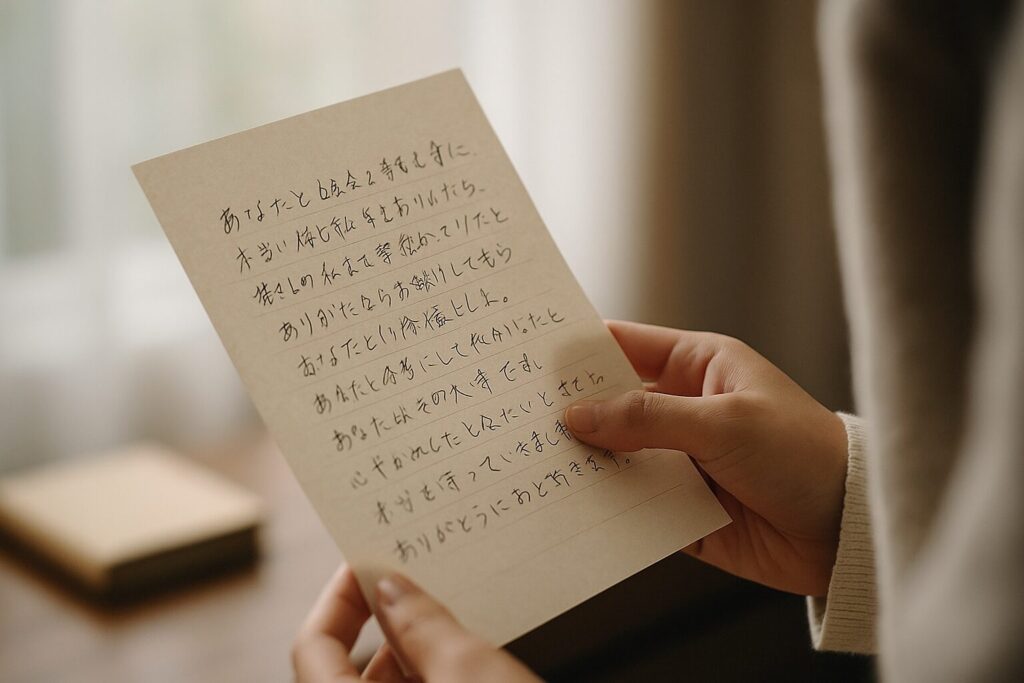 彼氏に気持ちを伝えたい 恋人からの手紙を読んで、思わず涙がこぼれた——そんな経験をした方は少なくないはずです。普段はLINEや通話ばかりのやり取りでも、手紙には“言葉以上の想い”が込められていて、心に深く残ります。 「感動的な手紙って、どんな風に... -